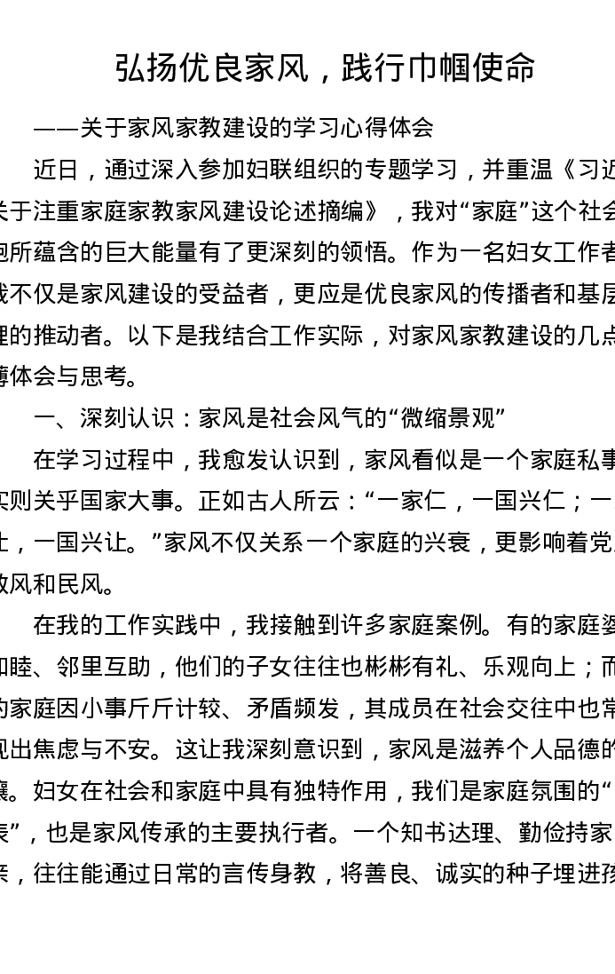 妇女工作者关于家风家教的学习心得体会(2203字)