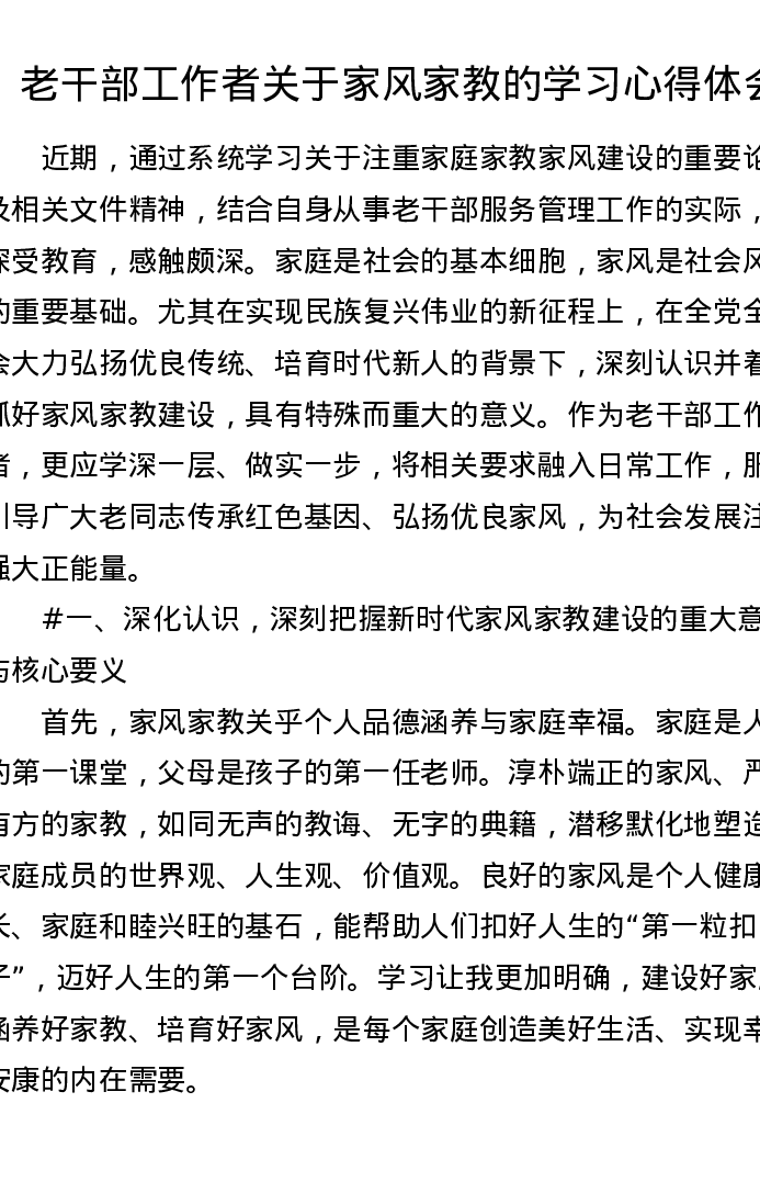 老干部工作者关于家风家教的学习心得体会(3283字)