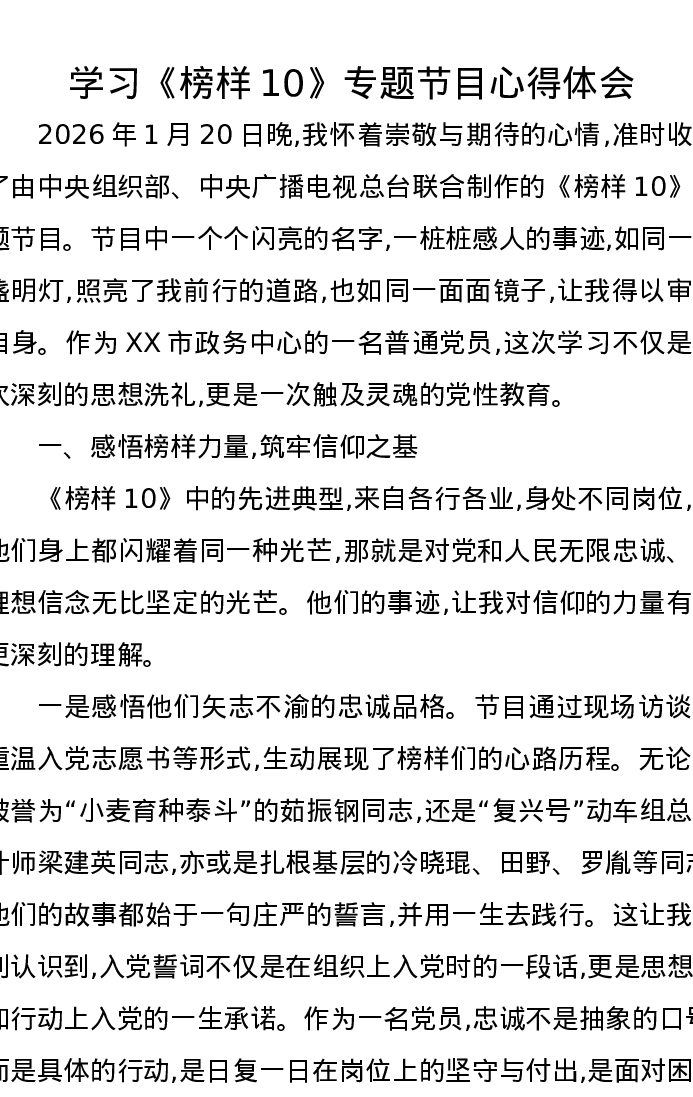 学习《榜样10》专题节目心得体会(1)