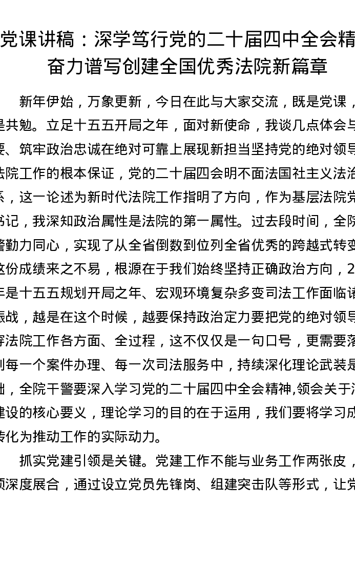 党课讲稿:深学笃行党的二十届四中全会精神奋力谱写创建全国优秀法院新篇章
