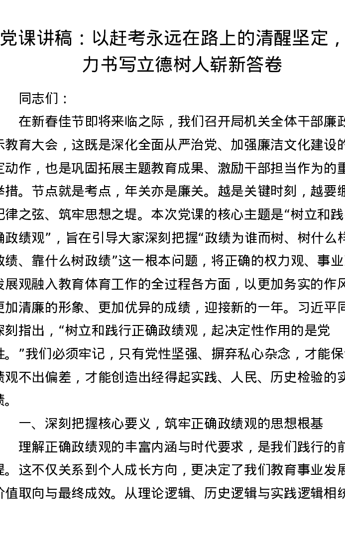 党课讲稿:以赶考永远在路上的清醒坚定,奋力书写立德树人崭新答卷