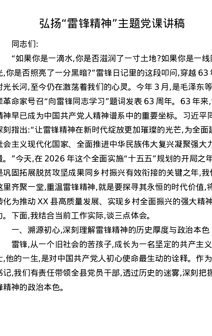 弘扬雷锋精神主题党课讲稿
