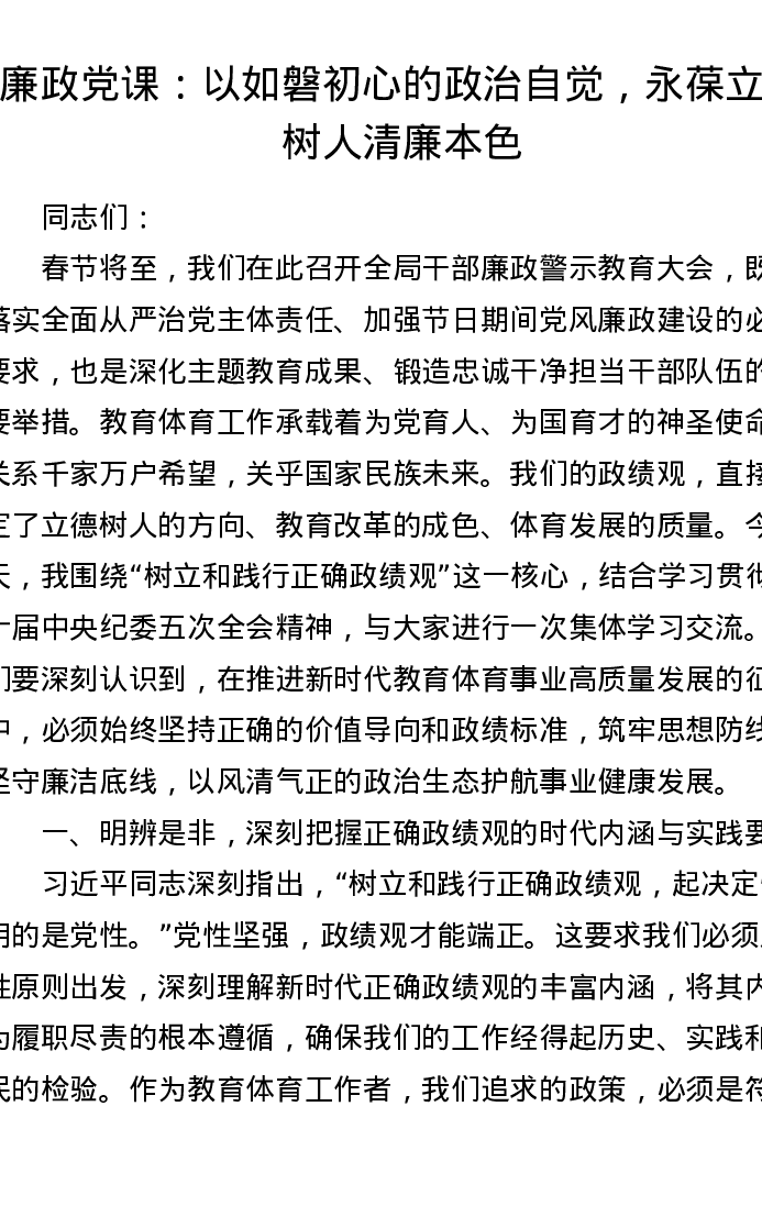 廉政党课:以如磐初心的政治自觉,永葆立德树人清廉本色