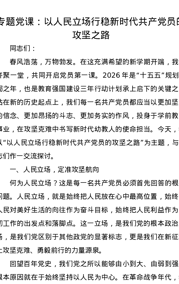 专题党课:以人民立场行稳新时代共产党员的攻坚之路