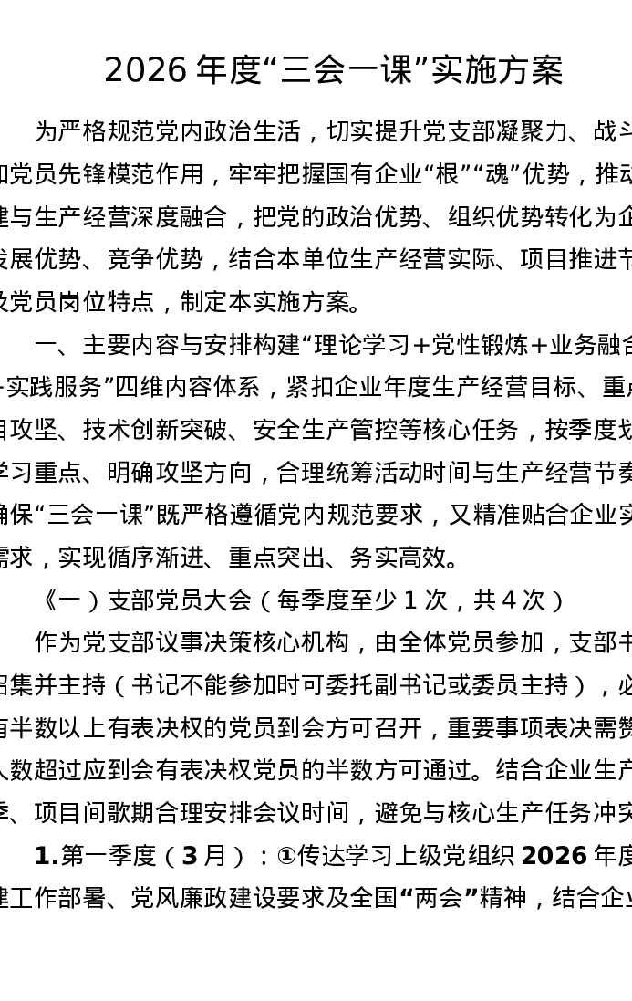 2026年度三会一课实施方案