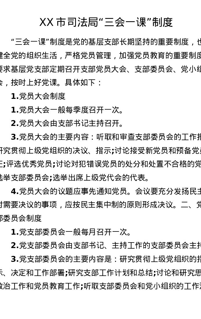 XX市司法局三会一课制度