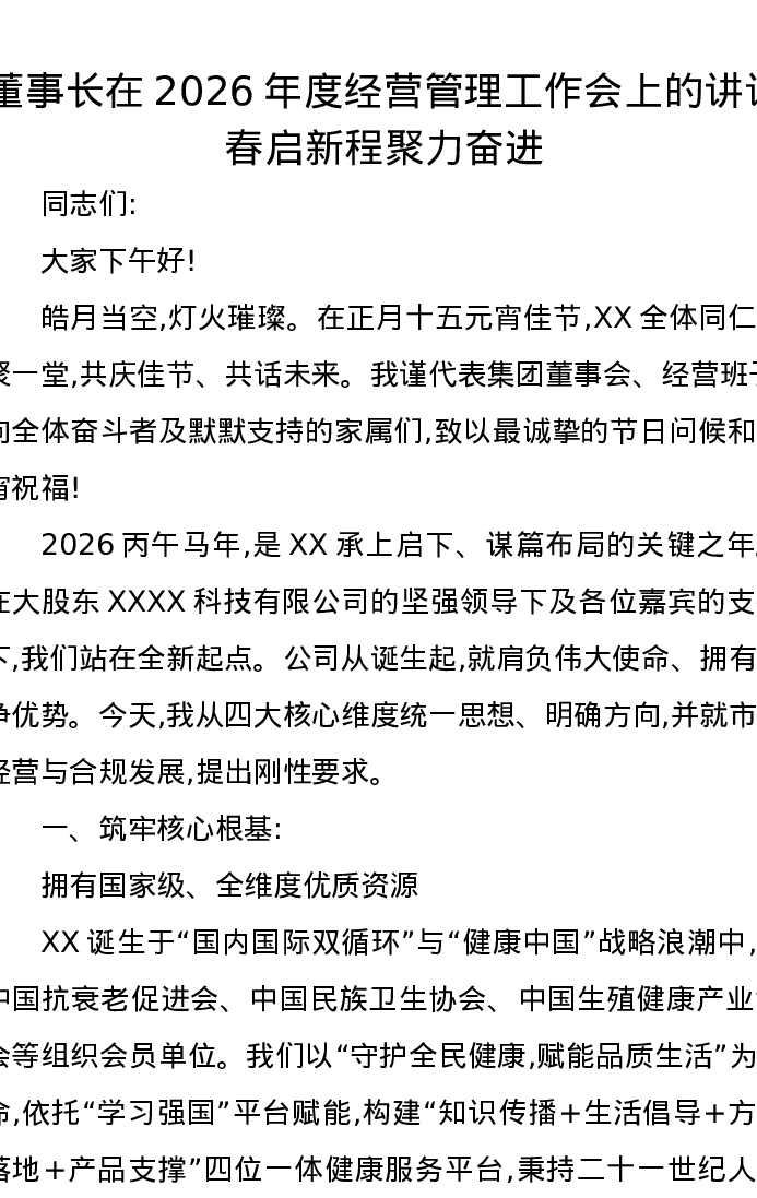 董事长在2026年度经营管理工作会上的讲话春启新程聚力奋进