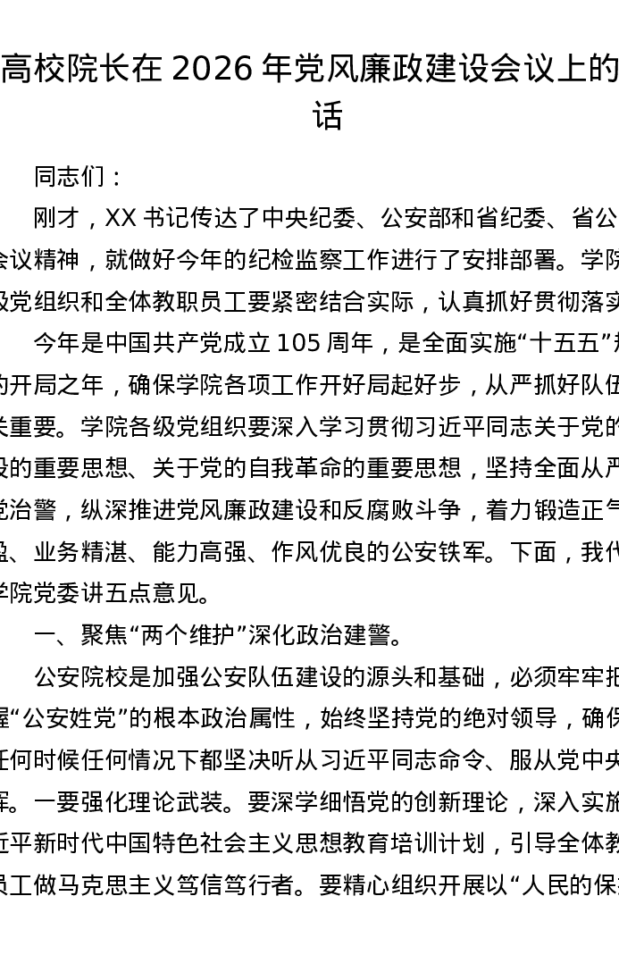 高校院长在2026年党风廉政建设会议上的讲话
