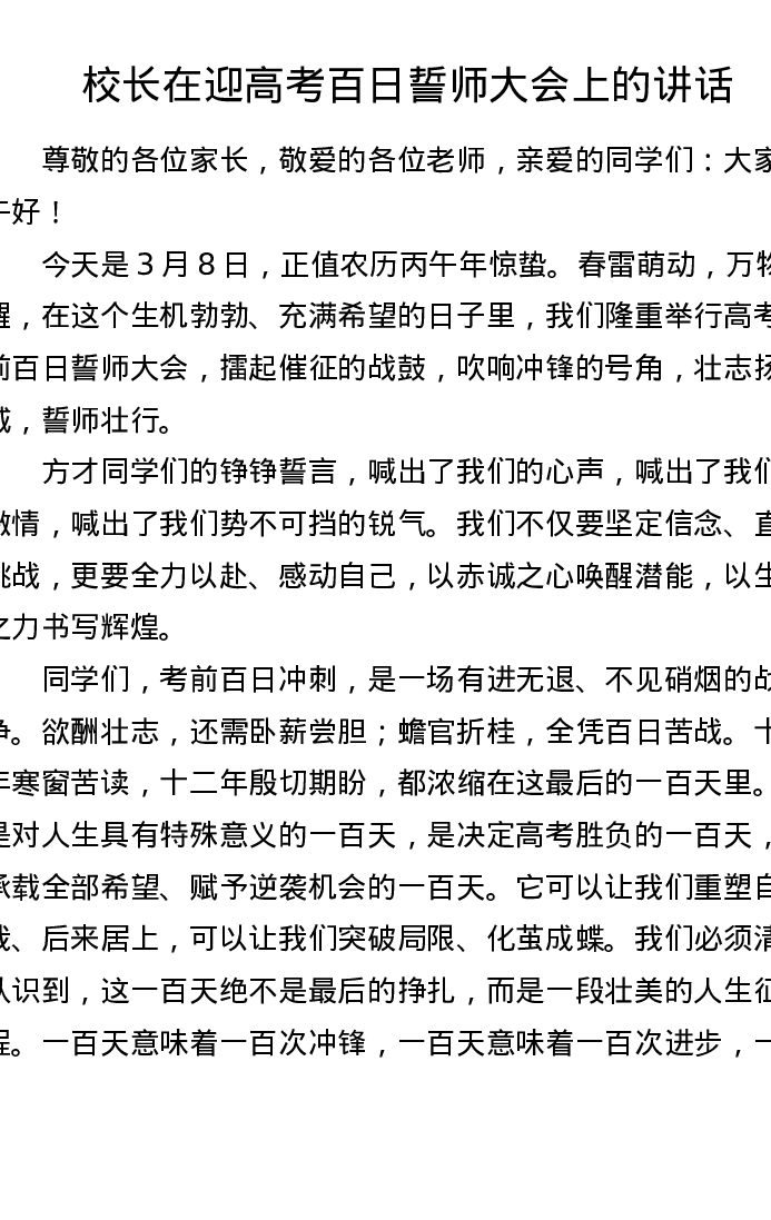 校长在迎高考百日誓师大会上的讲话