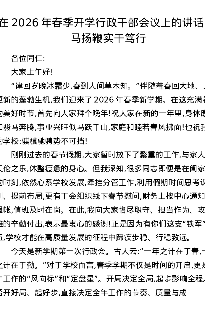 在2026年春季开学行政干部会议上的讲话:策马扬鞭实干笃行