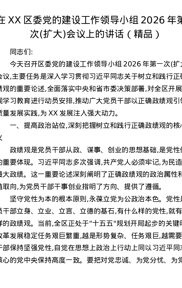 在XX区委党的建设工作领导小组2026年第一次(扩大)会议上的讲话