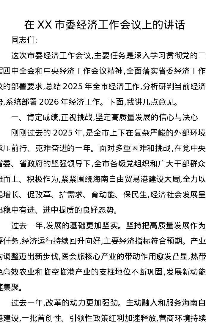 在XX市委经济工作会议上的讲话--3