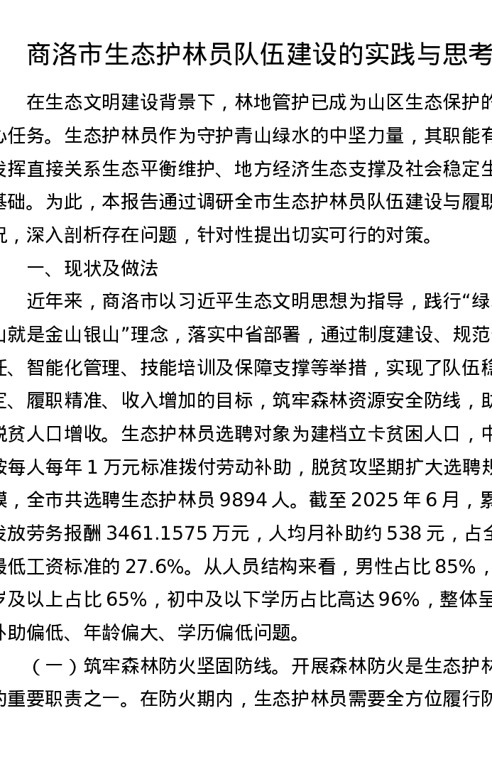 调研报告:商洛市生态护林员队伍建设的实践与思考