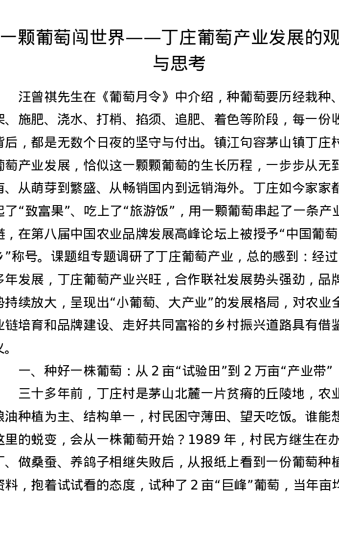 一颗葡萄闯世界——丁庄葡萄产业发展的观察与思考