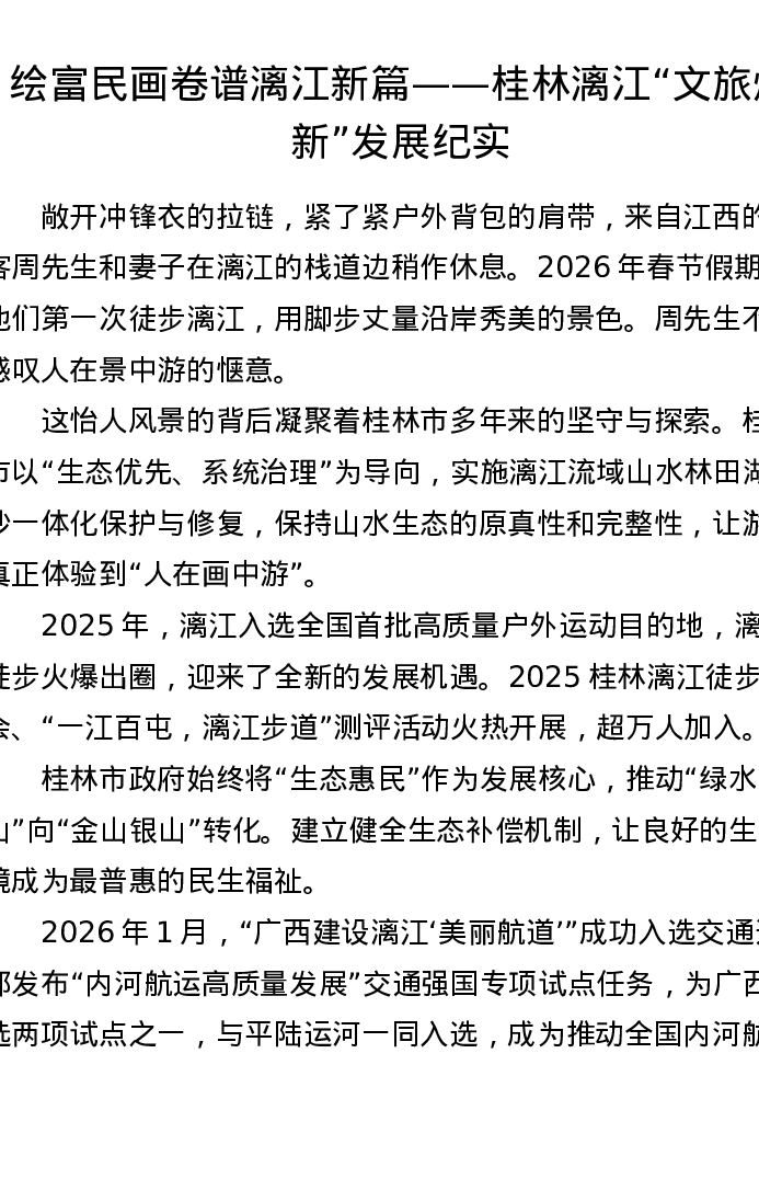 绘富民画卷 谱漓江新篇——桂林漓江 文旅焕新 发展纪实