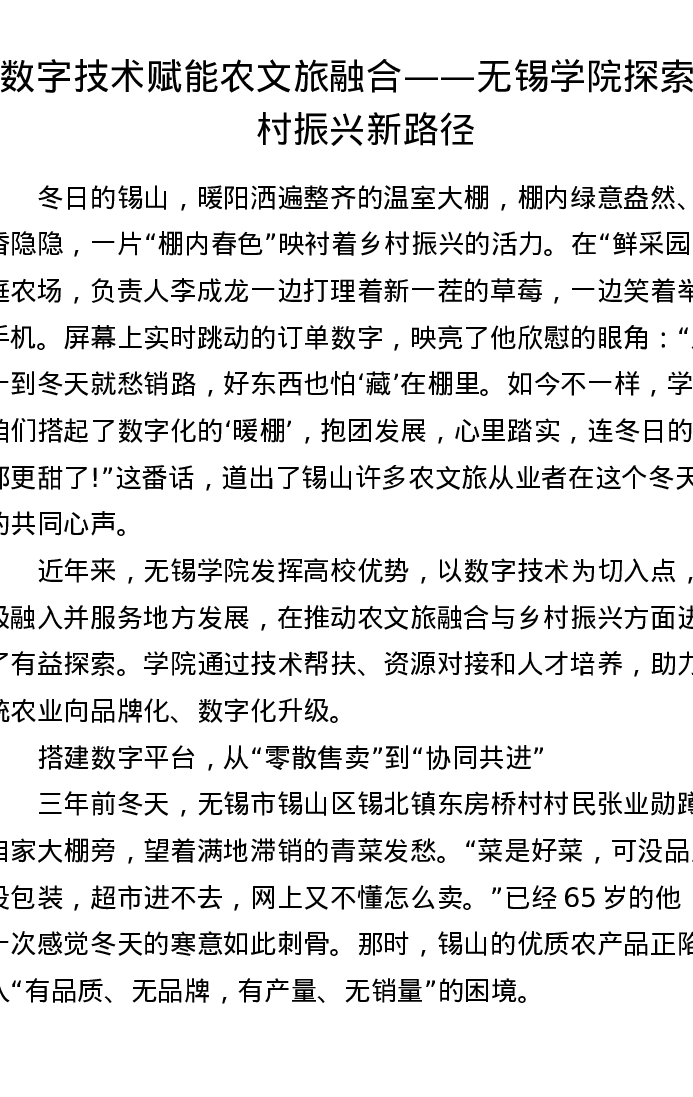 数字技术赋能农文旅融合——无锡学院探索乡村振兴新路径