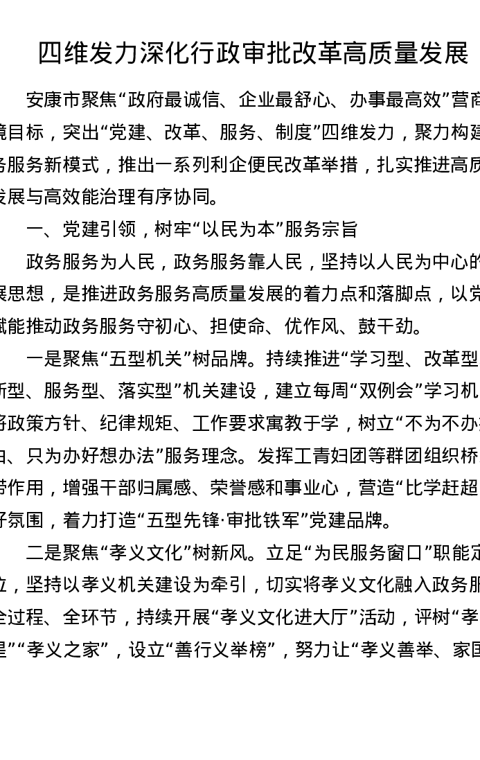 四维发力深化行政审批改革高质量发展