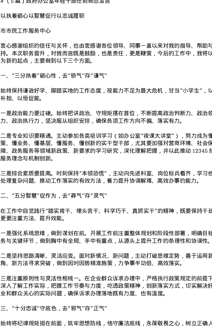 汇编:政府办公室年轻干部任前表态发言5篇