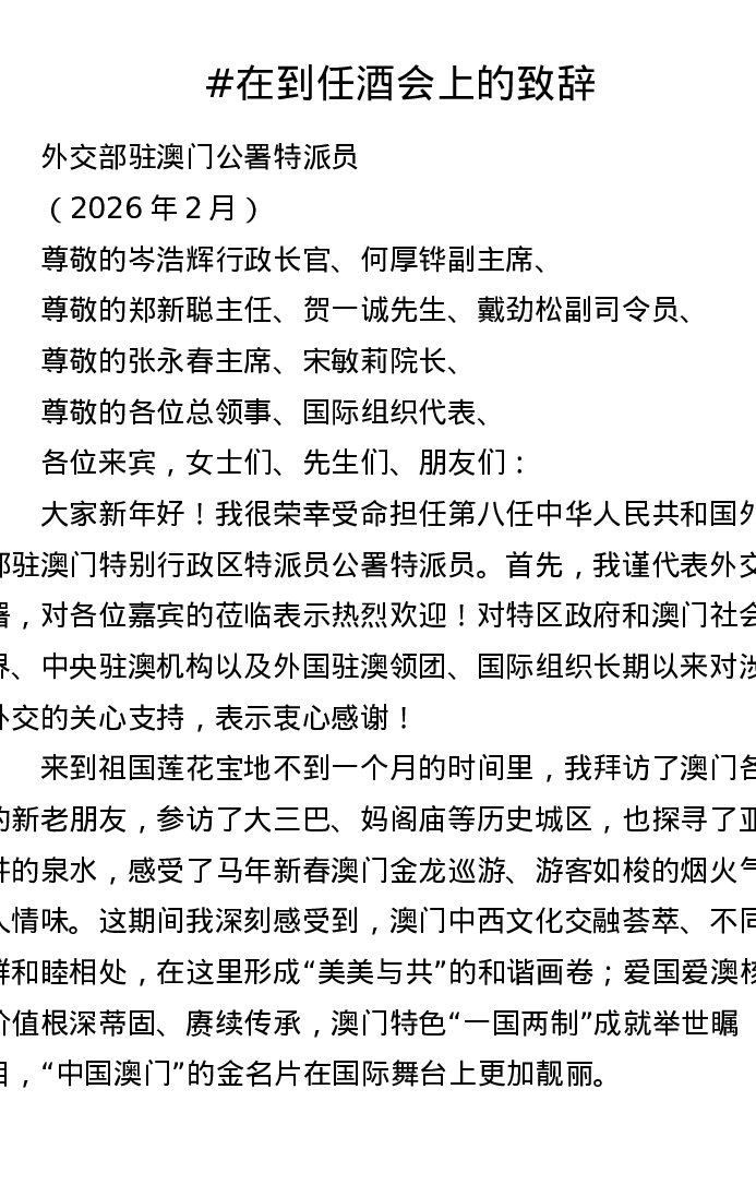 在到任酒会上的致辞