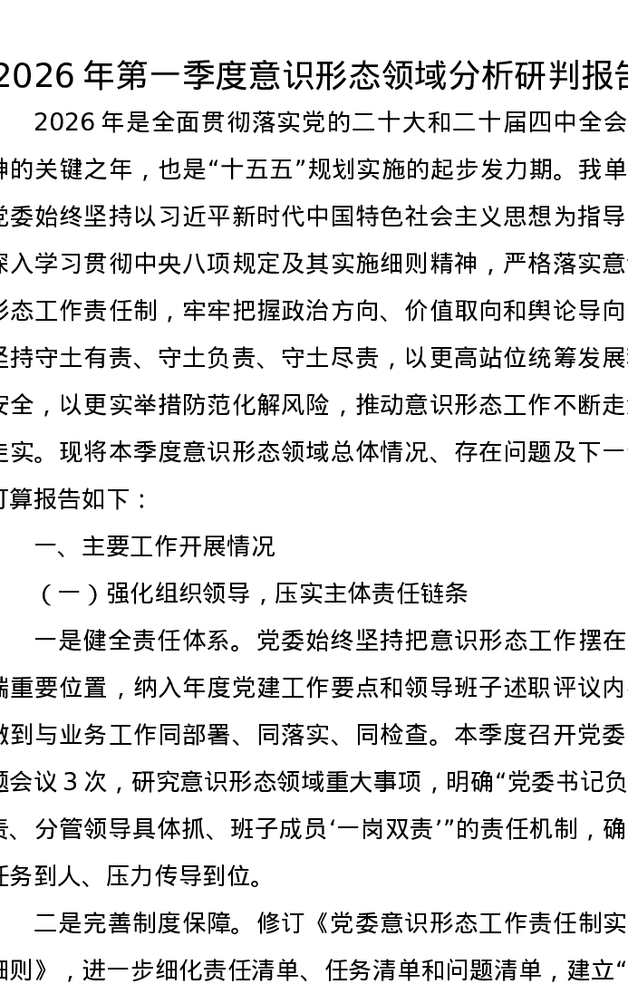 2026年第一季度意识形态领域分析研判报告