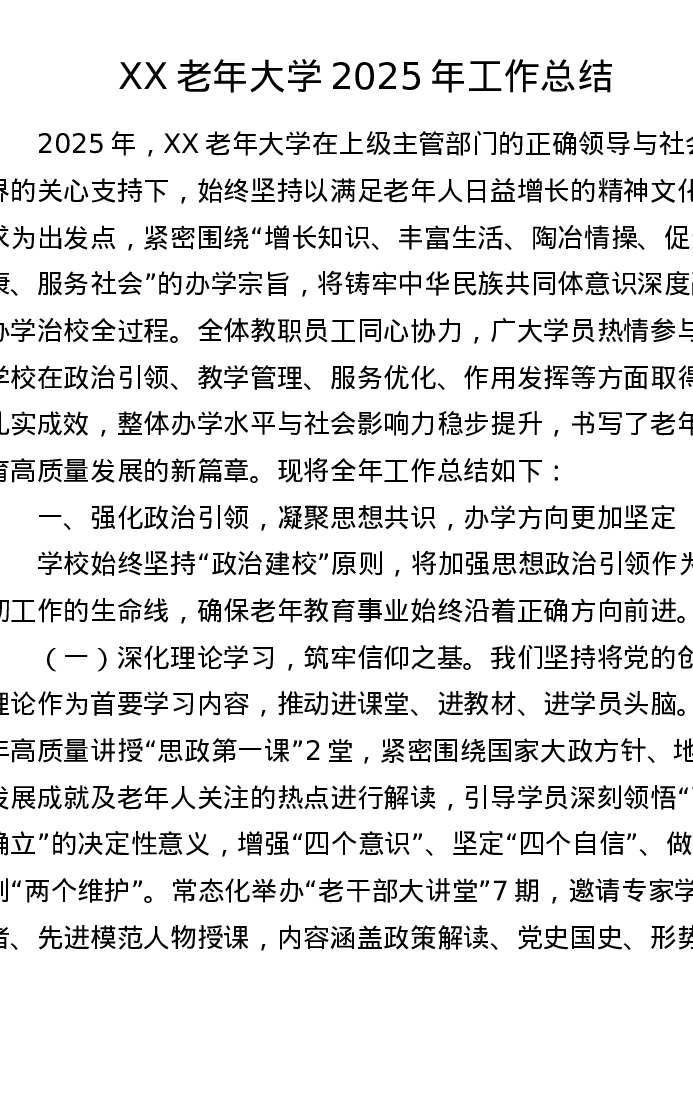 XX老年大学2025年工作总结