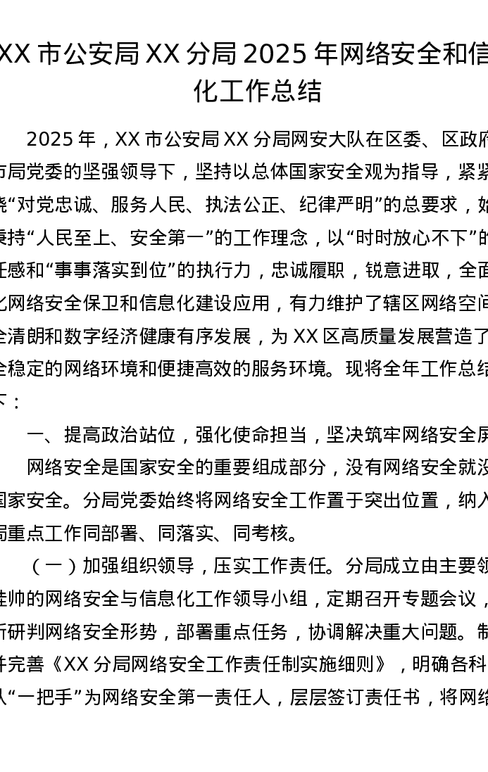 XX市公安局XX分局2025年网络安全和信息化工作总结