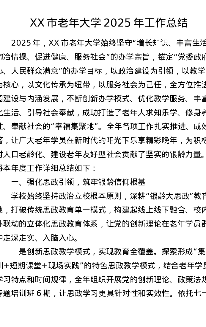 XX市老年大学2025年工作总结2