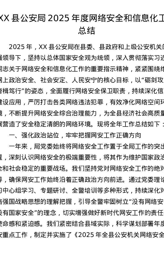 XX县公安局2025年度网络安全和信息化工作总结