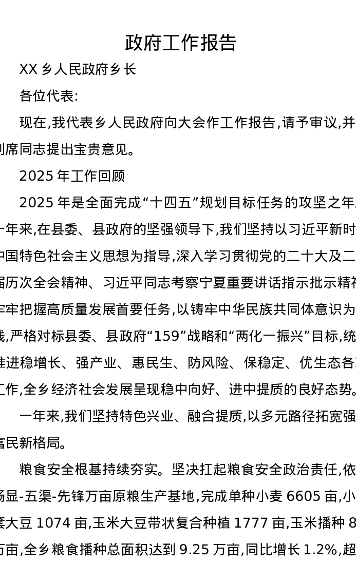 XX乡政府2026年工作报告