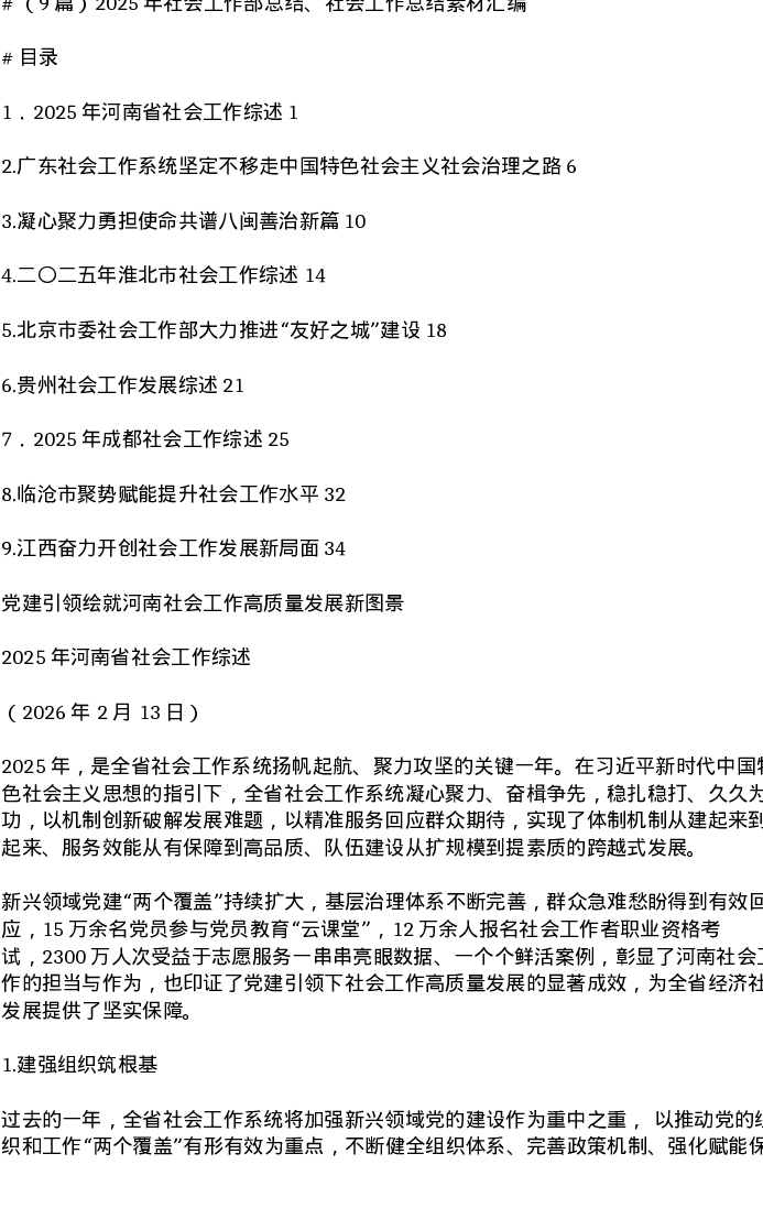 汇编:2025年社会工作部总结、社会工作总结9篇