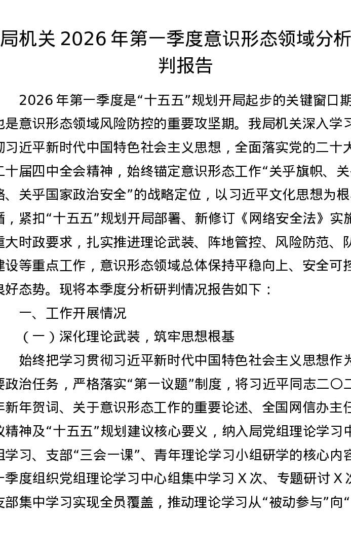 局机关2026年第一季度意识形态领域分析研判报告(7985字)