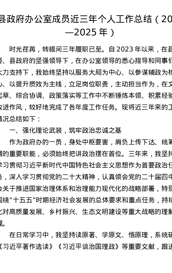 县政府办公室成员近三年个人工作总结(2023—2025年)