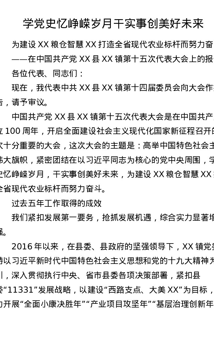 乡镇2021年党代会换届工作报告(7486字)