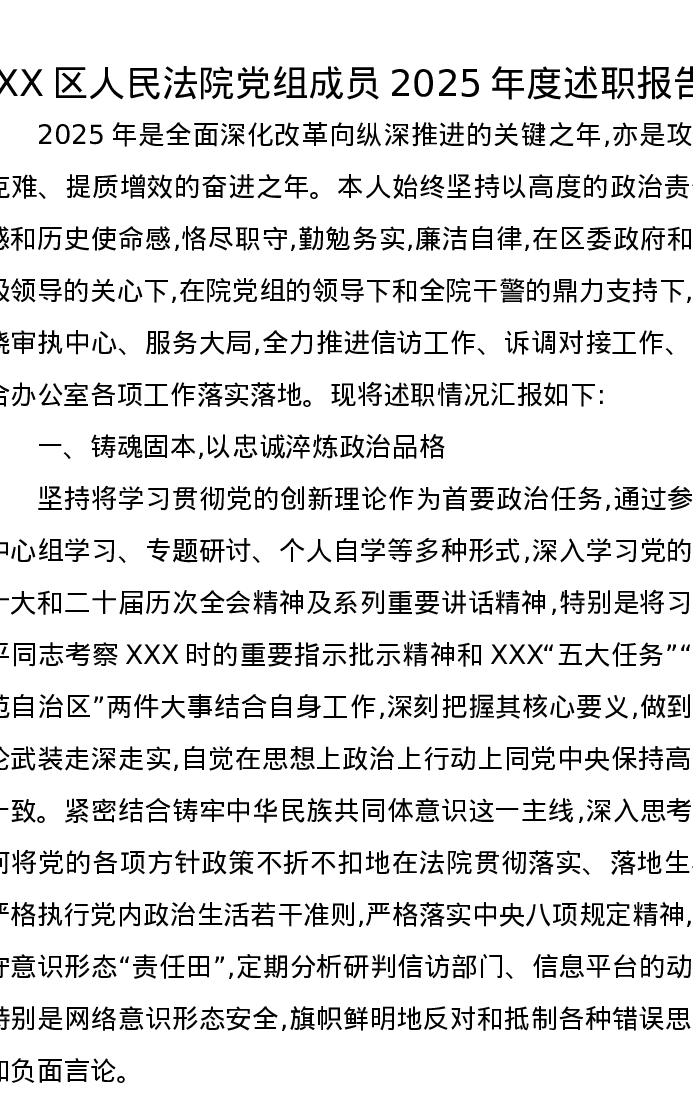 XX区人民法院党组成员2025年度述职报告