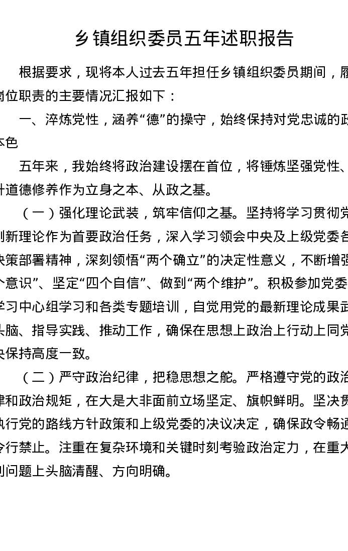 乡镇组织委员五年述职报告