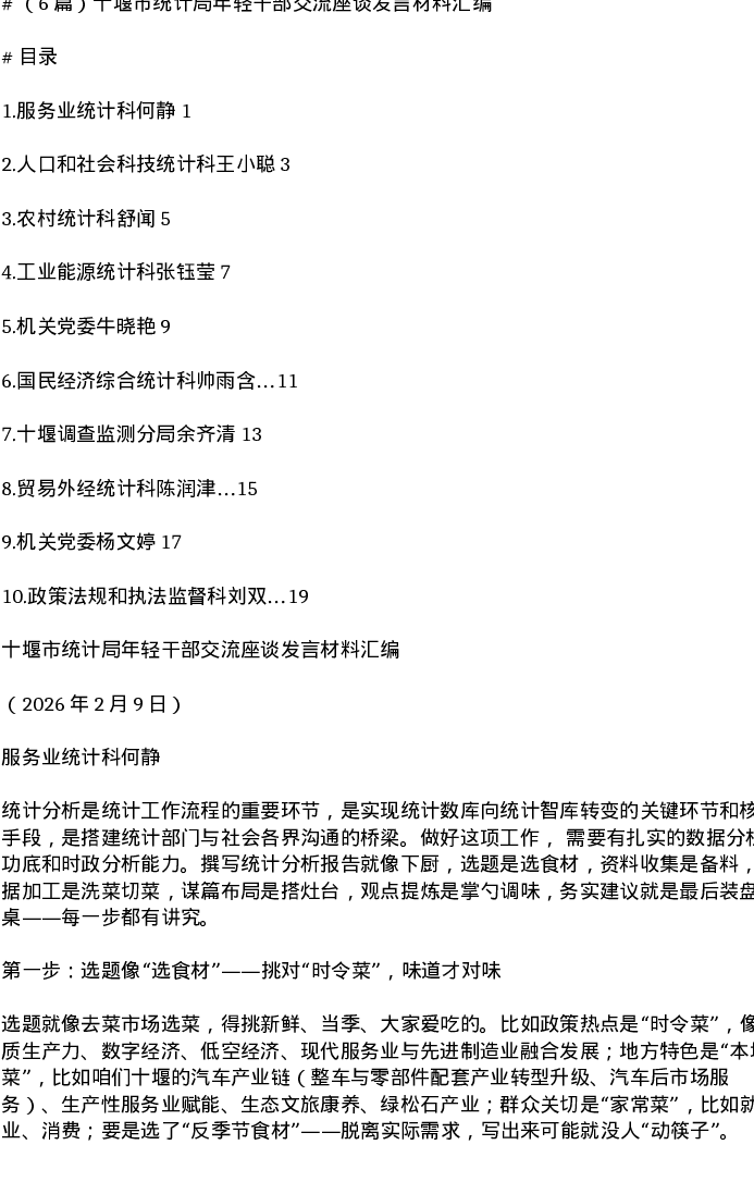 汇编:十堰市统计局年轻干部交流座谈发言6篇