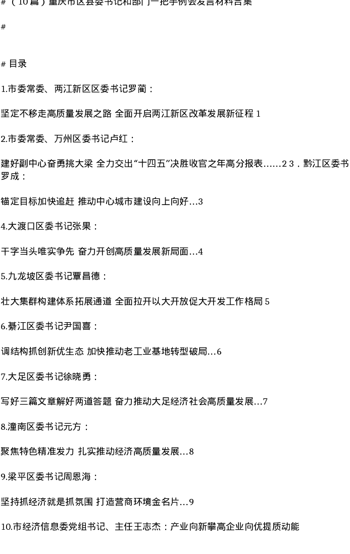 汇编:重庆市区县委书记和部门一把手例会发言材料合集10篇