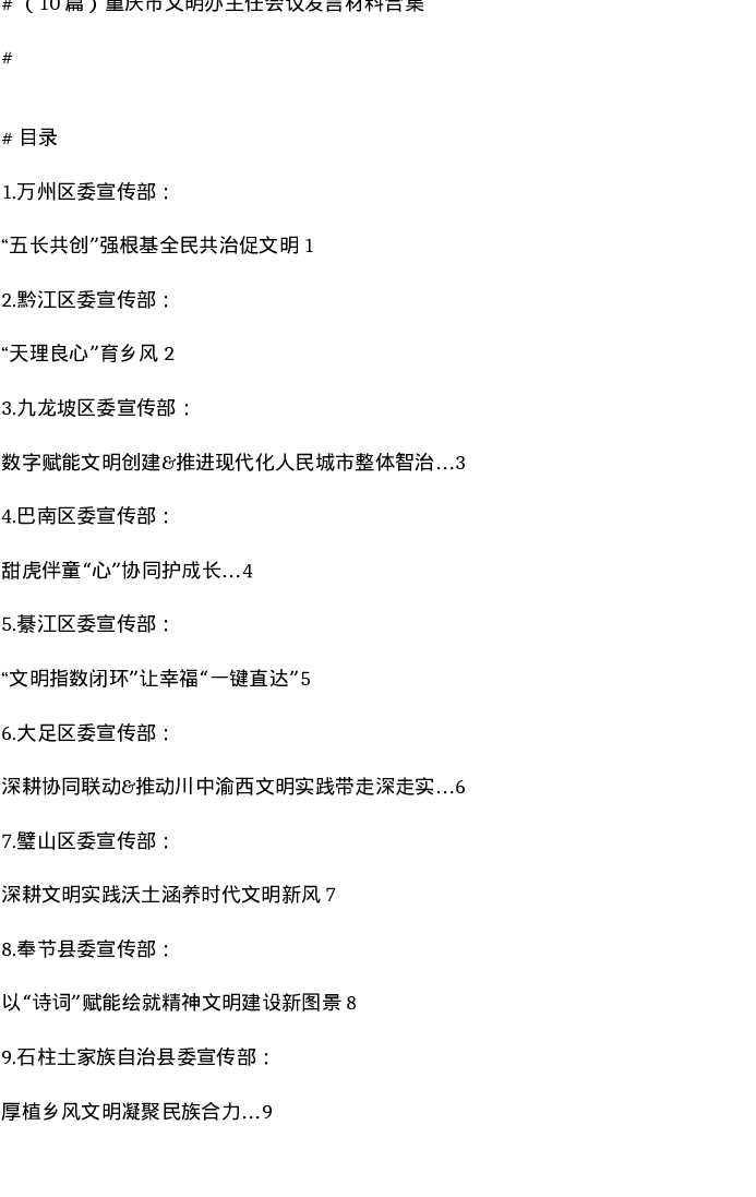 汇编:重庆市文明办主任会议发言材料合集10篇