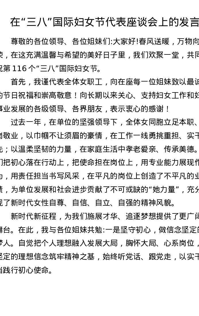 在三八国际妇女节代表座谈会上的发言