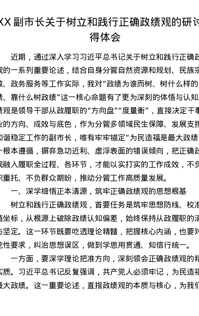 XX副市长关于树立和践行正确ZJG的研讨心得体会