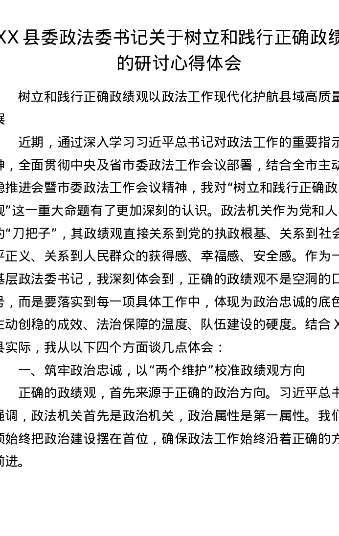 XX县委政法委书记关于树立和践行正确ZJG的研讨心得体会