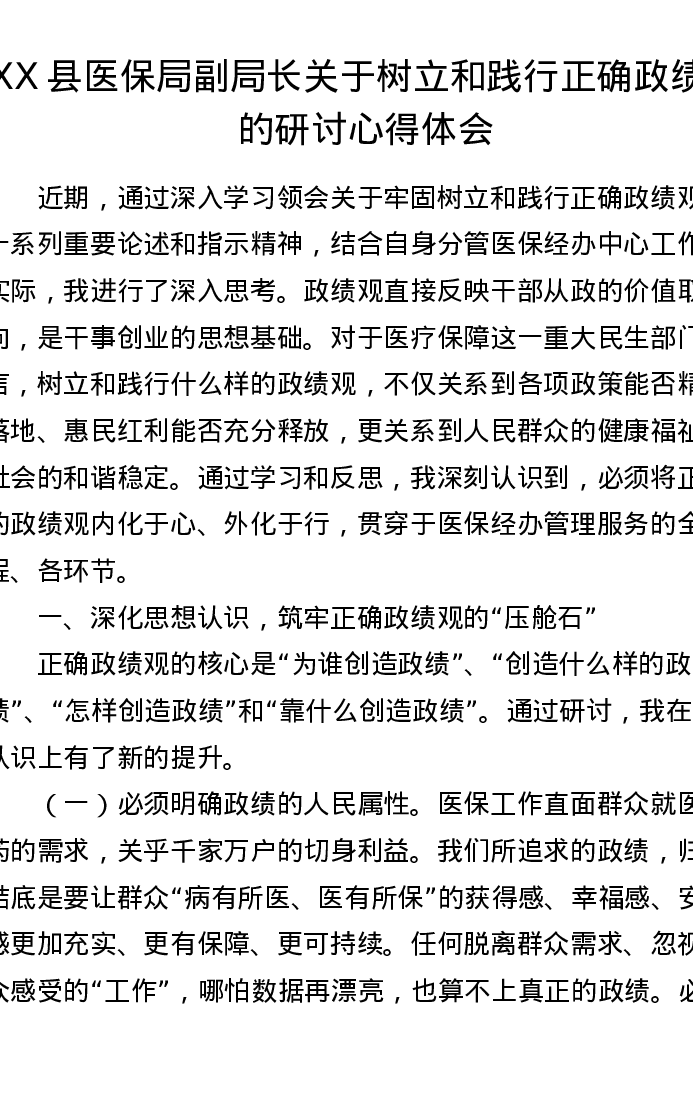 XX县医保局副局长关于树立和践行正确ZJG的研讨心得体会