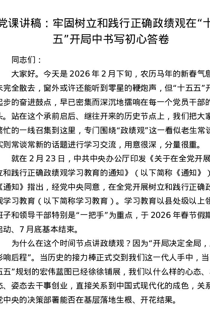 党课讲稿:牢固树立和践行正确ZJG 在十五五开局中书写初心答卷