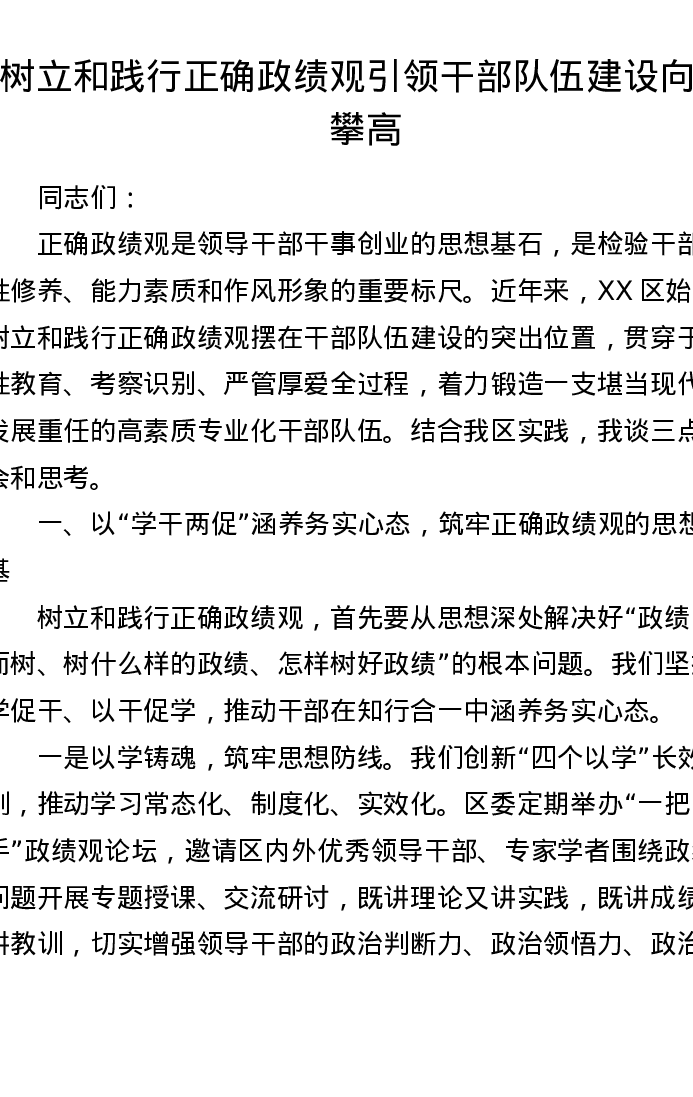 树立和践行正确ZJG 引领干部队伍建设向新攀高