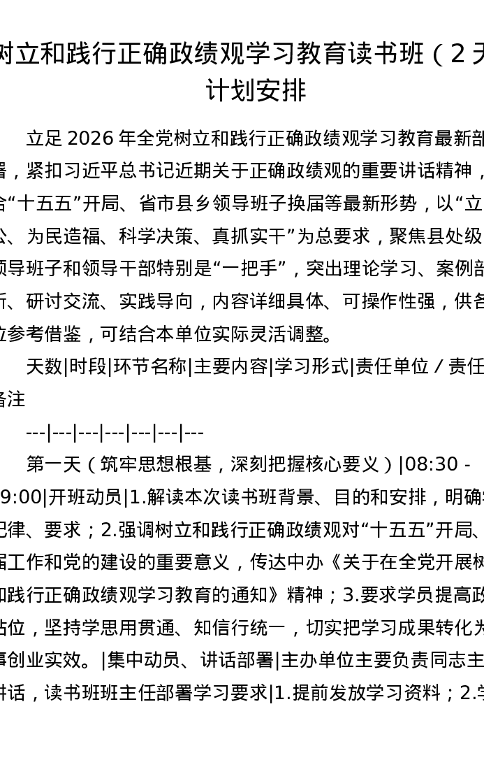 树立和践行正确ZJG学习教育读书班(2天)计划安排