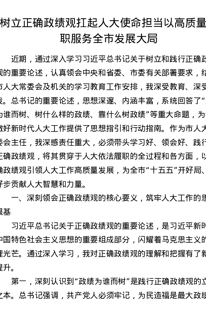 心得体会:树立正确ZJG扛起人大使命担当 以高质量履职服务全市发展大局