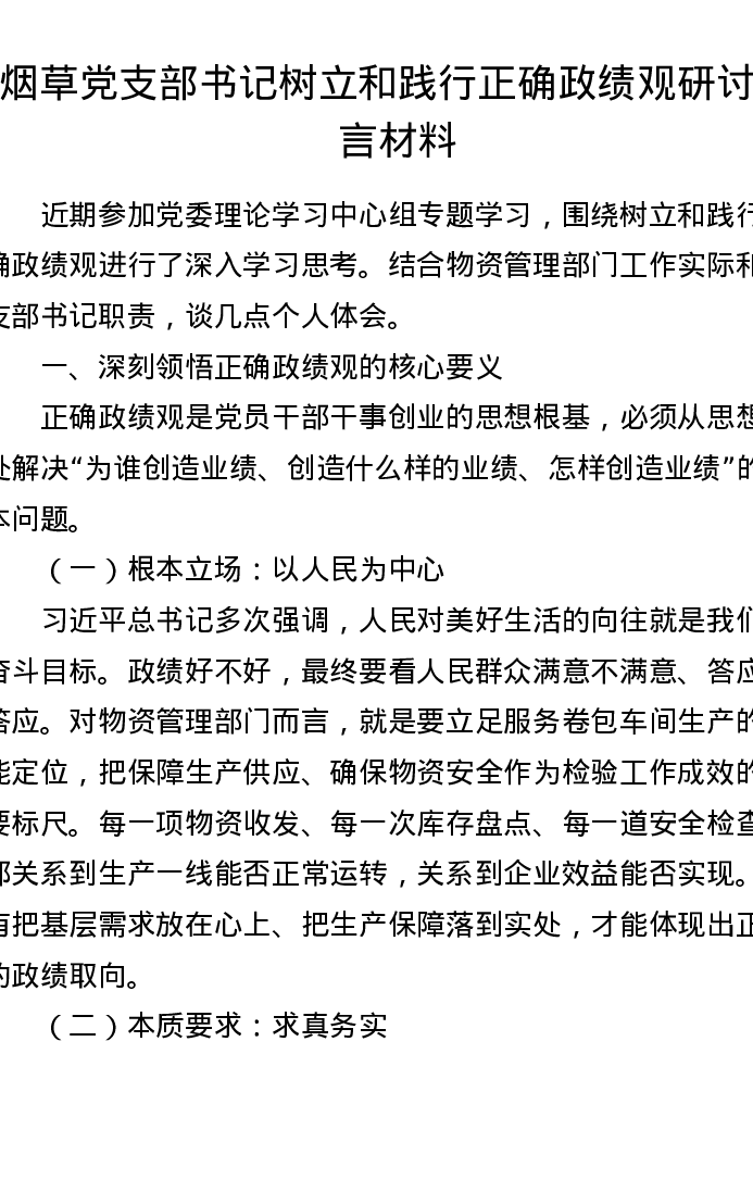 烟草党支部书记树立和践行正确ZJG研讨发言材料