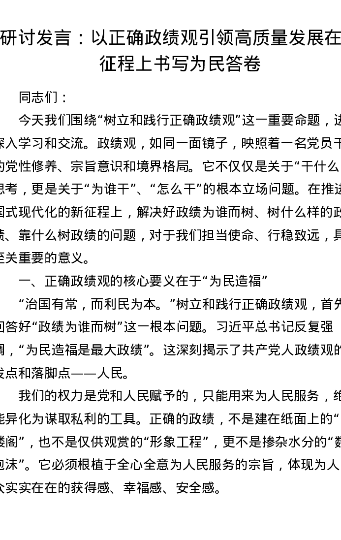 研讨发言:以正确ZJG引领高质量发展在新征程上书写为民答卷