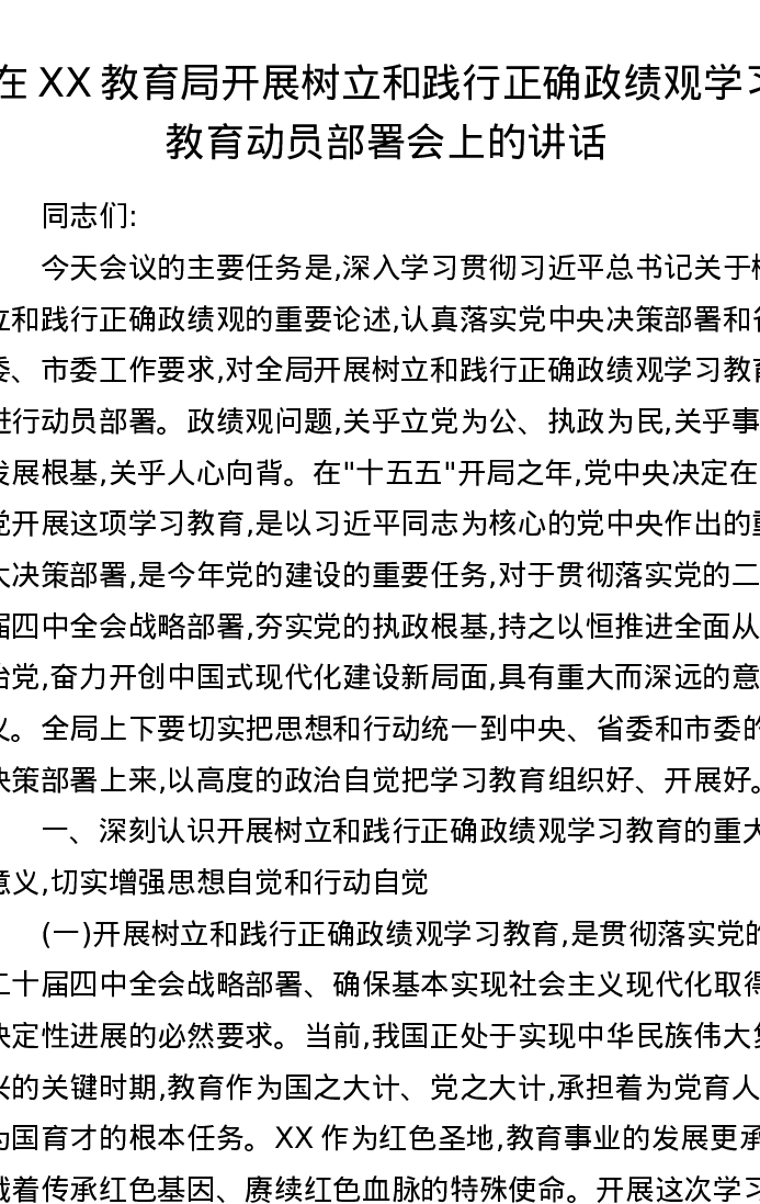 在XX教育局开展树立和践行正确ZJG学习教育动员部署会上的讲话