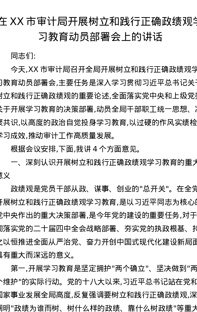 在XX市审计局开展树立和践行正确ZJG学习教育动员部署会上的讲话